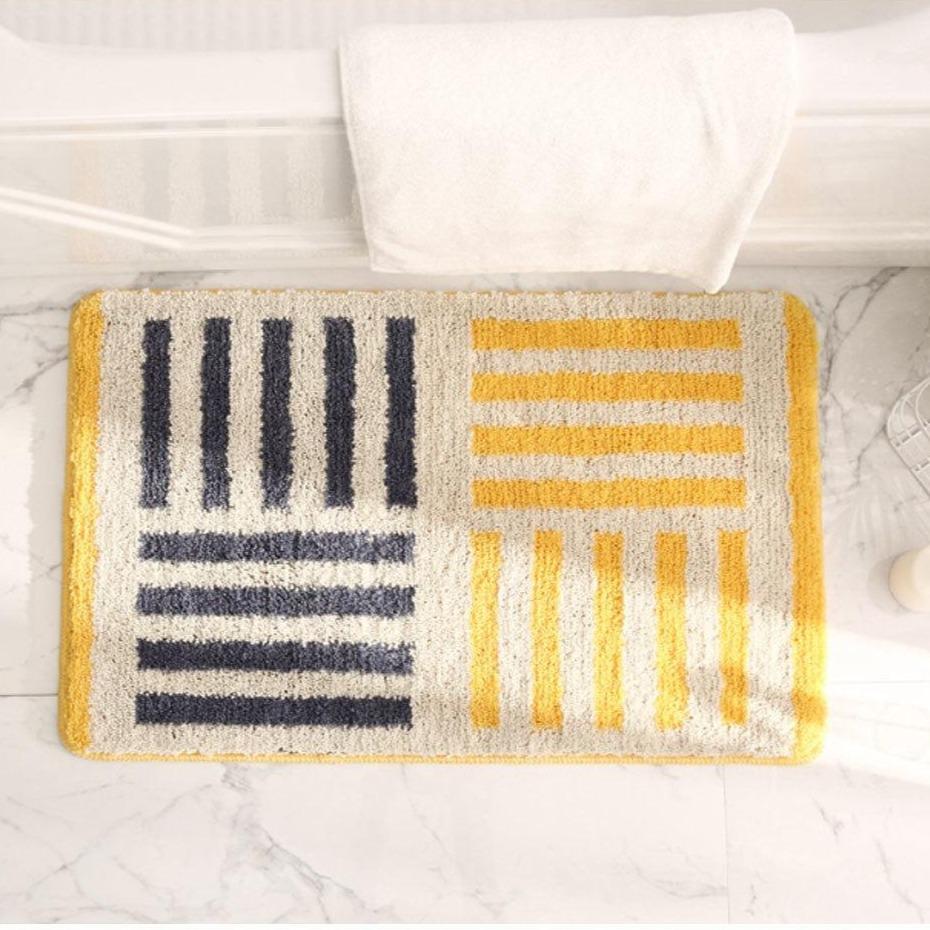 Forvandl dit badeværelse med en Blød gul bademåtte med striber