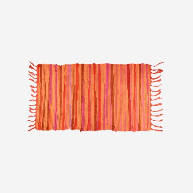 Hvert af vores kludetæpper er vævet med omhu, hvilket giver det et unikt udseende og en taktil fornemmelse, der kun kan opnås med ægte håndværk. De mange farver og de charmerende frynser i enderne giver tæppet et legende og hyggeligt udtryk, der vil komplimentere enhver indretningsstil. Uanset om din entré er stor eller lille, lys eller mørk, vil dette tæppe tilføje en følelse af glæde og karakter, der vil gøre din hverdag lidt mere farverig. Det er mere end bare et tæppe – det er en stemningsskaber.