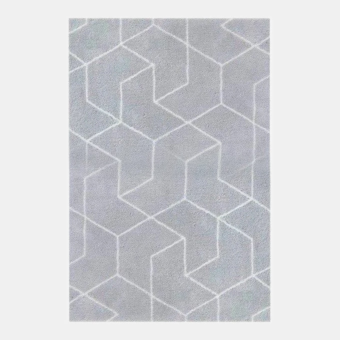 Oplev komforten med vores gråt shaggy tæppe med geometrisk mønster