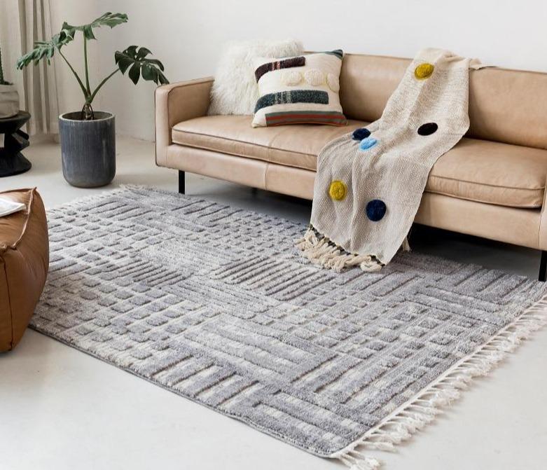 Leder du efter den perfekte måde at tilføre varme, stil og personlighed til dit hjem? Så er vores kvadratiske berbertæppe med geometrisk mønster et oplagt valg. Dette smukke tæppe er ikke bare en gulvbelægning – det er et kunstværk, der inviterer til afslapning og hygge. Forestil dig at synke ned i din sofa, mens dine fødder nyder den bløde og luksuriøse tekstur af tæppet. Det tidløse geometriske design passer perfekt ind i både moderne og mere klassiske indretninger, og de neutrale nuancer af grå og creme vil komplementere ethvert farveskema. Det er det ideelle tæppe til at skabe en samlet og indbydende atmosfære i din stue, dit soveværelse eller endda på kontoret.