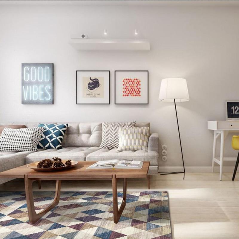 Forvandl dit hjem til et inspirerende tilflugtssted med vores moderne gulvtæppe, der smukt kombinerer et klassisk orientalsk mønster med en nutidig æstetik. Dette tæppe er ikke bare en gulvbelægning; det er et kunstværk, der inviterer til hygge og stil i dit moderne hjem. Forestil dig at træde ind i din stue, hvor dette gulvtæppe straks fanger øjet med sine skarpe geometriske former og en harmonisk farvepalet af blå, lilla og beige nuancer. Det er det perfekte fundament for en indretning, der udstråler både ro og personlighed, ligesom i billedet, hvor det elegant komplementerer den lyse sofa og det varme træbord. Skab et rum, hvor gode stemninger trives, og hvor design møder komfort.
