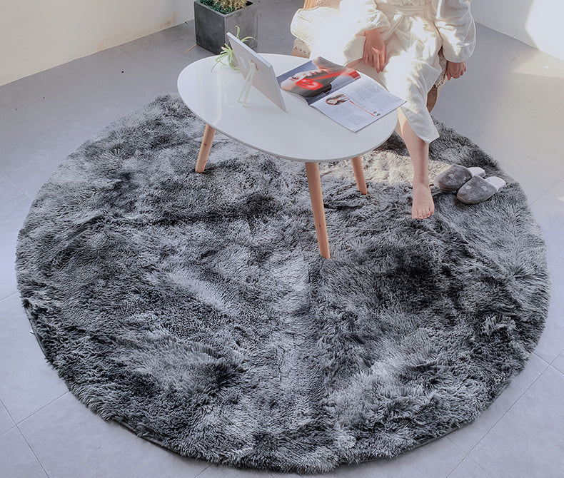 Rundt lysegråt shaggy gulvtæppe
