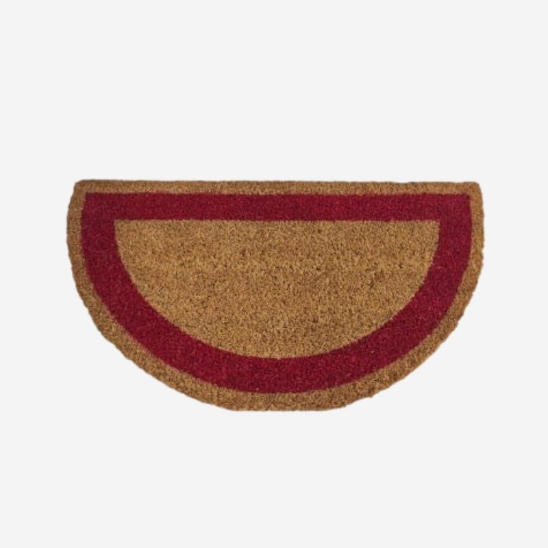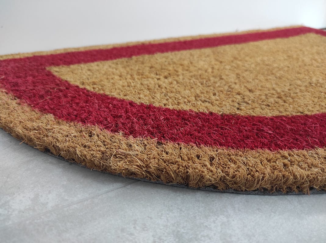 - **Stilfuldt design:** Den halvmåneformede måtte med rød stribe tilføjer et elegant præg til din entré.