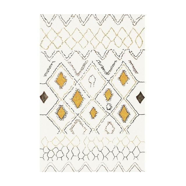 Gør dit hjem komplet med dette enestående tynde hvide berbertæppe med gult, og lad det fortælle en historie om stil og komfort i dit hjem.